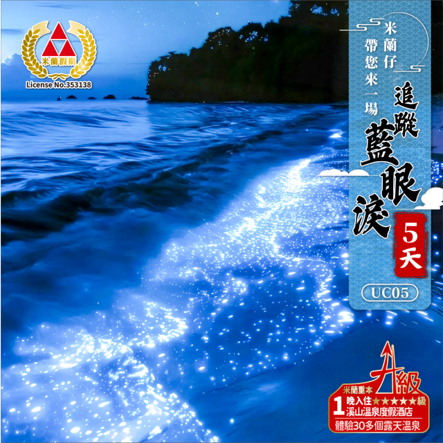【高鐵免稅團】米蘭仔帶您來一場追蹤藍眼淚深度5天團 團號: UC05