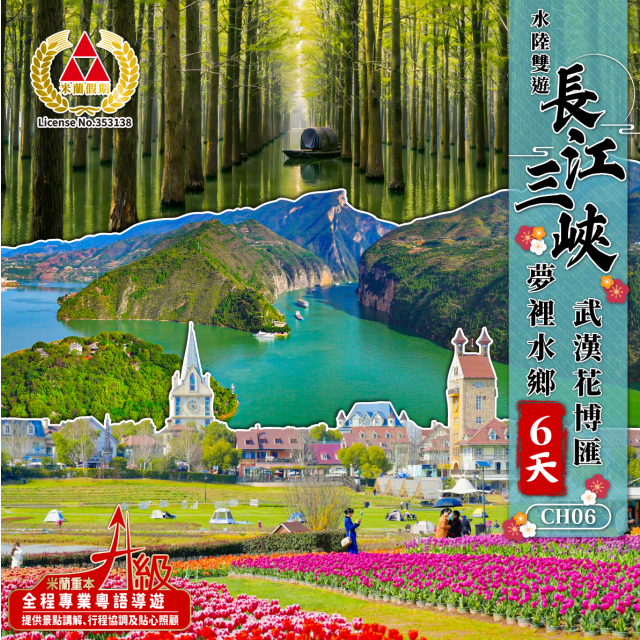 【高鐵免稅團】水陸雙遊長江三峽 夢裡水鄉 武漢花博匯 6天深度賞花遊 團號:CH06