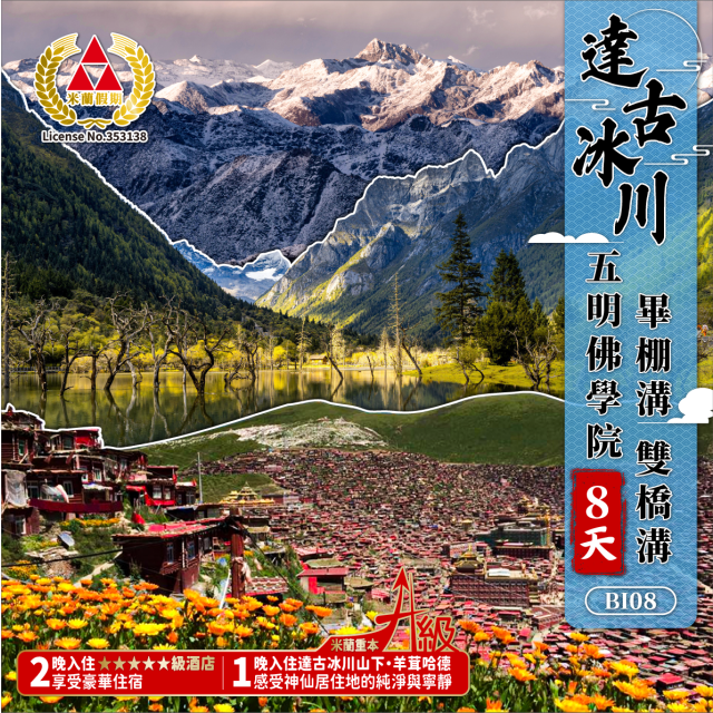 達古冰川 五明佛學院 畢棚溝 雙橋溝 8天深度遊 團號:BI08
