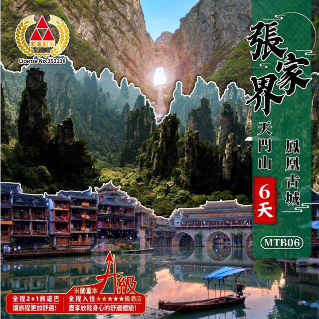 張家界 天門山 鳳凰古城 高鐵6天美食純玩之旅 團號:MTB06