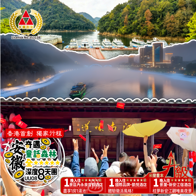 香港首創 獨家行程 安徽奇遇 童話森林全5星深度8天團 團號:UU08