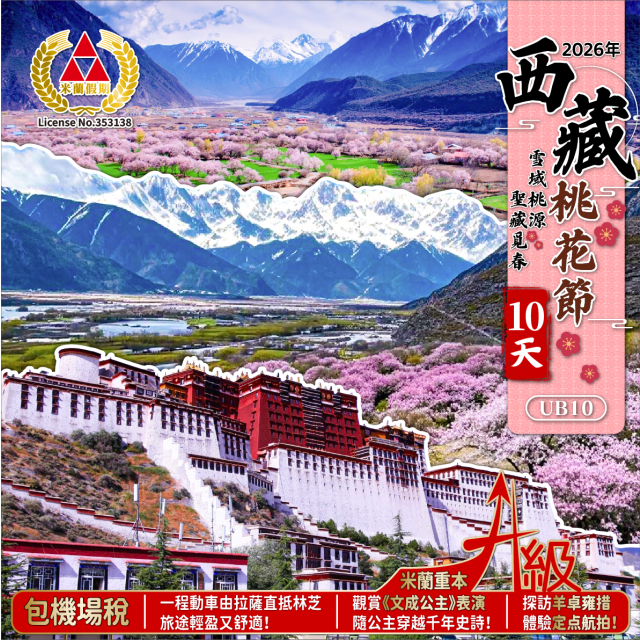 雪域桃源·聖藏覓春 2026年西藏桃花節10天深度遊 團號:UB10
