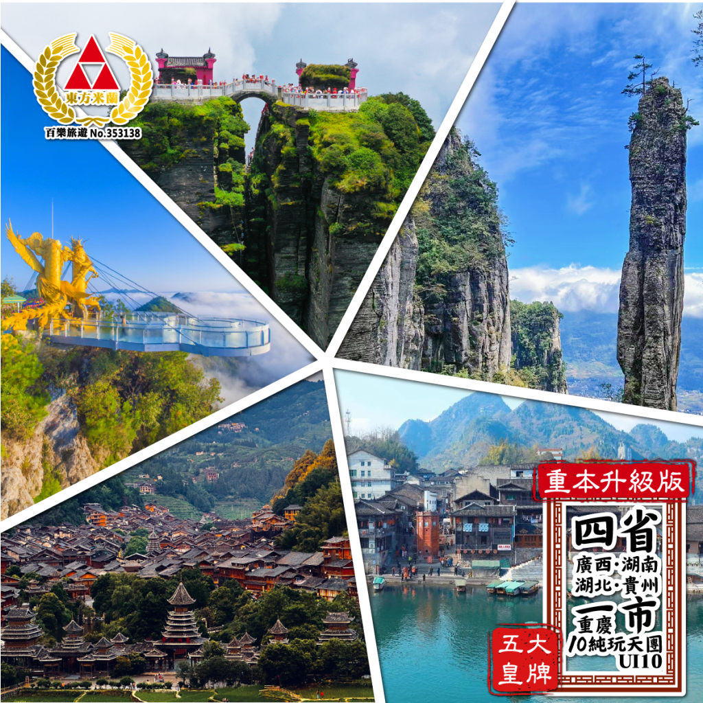 重本升級版 四省一市 廣西.湖南.湖北.貴州.重慶 10天純玩高鐵團 團號: UI10