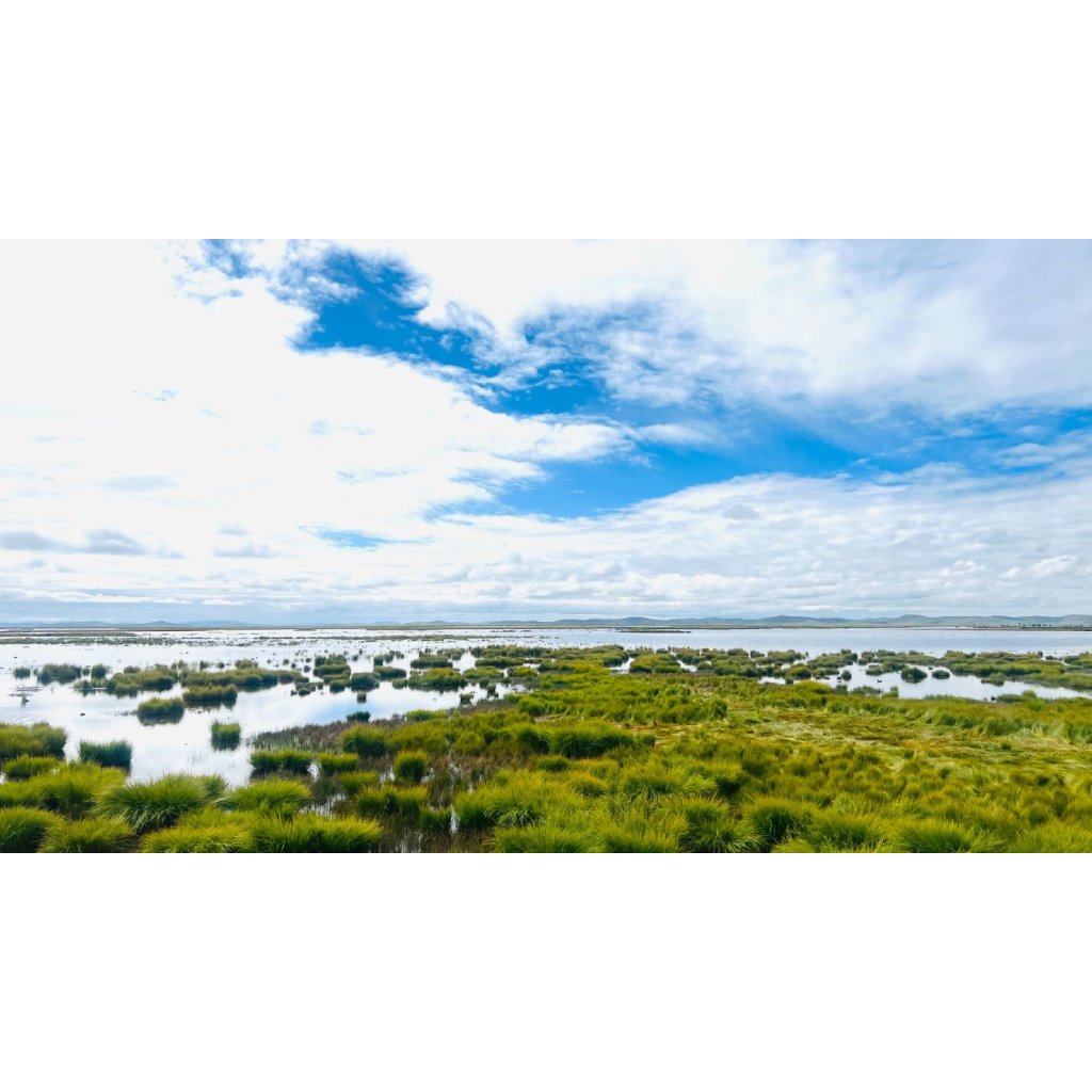 花海天鏡:走進若爾蓋花湖,花影湖光與藍天白雲相映成趣,宛如人間幻境!
