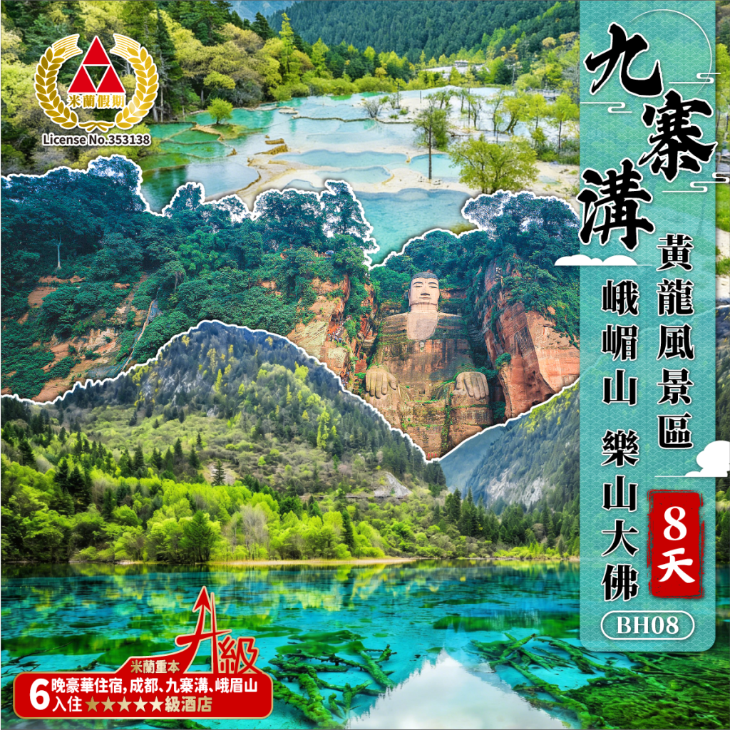 米蘭重本升級:6晚豪華住宿,成都、九寨溝、峨眉山入住★★★★★級酒店。