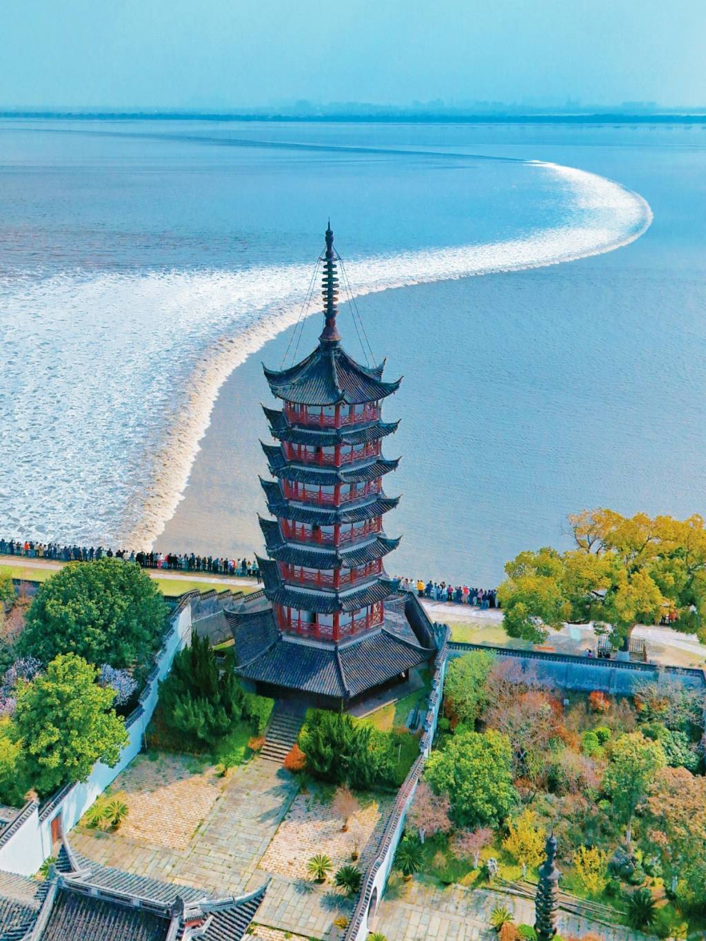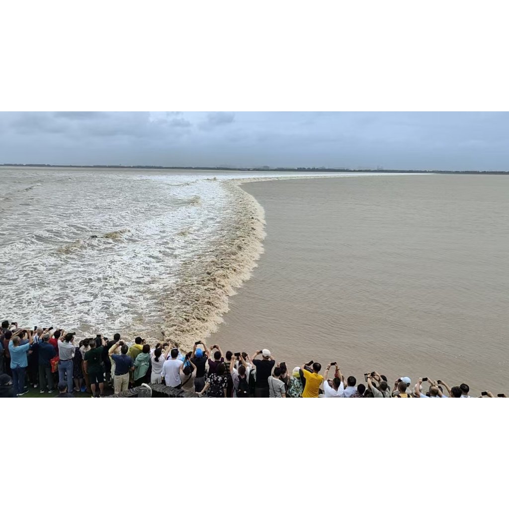 天下奇觀:親臨觀潮勝地公園,最佳觀潮點守候「一線潮」奔湧而至。