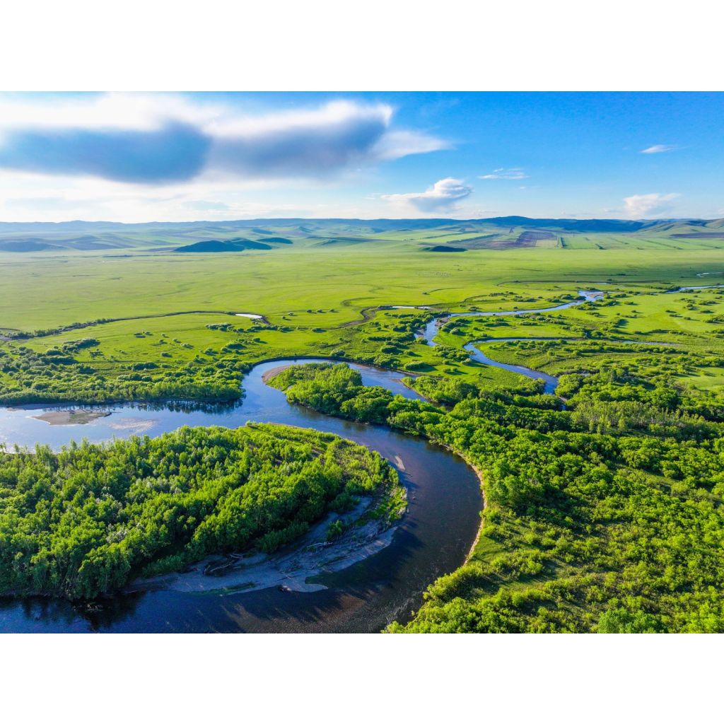 天下第一曲水:登高俯瞰莫日格勒河景區,飽覽九曲河道蜿蜒於遼闊草原的絕美天際盛景。